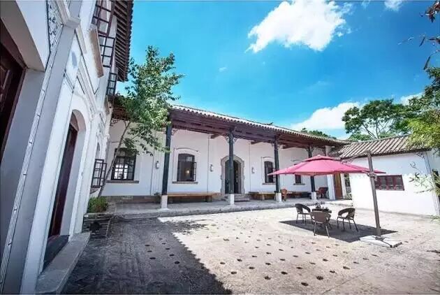 在滇越鐵路的盡頭,優雅地佇立著一座被蔥鬱花草掩映著的法式庭院。潔白的牆垣,木質百葉窗後白色亞麻窗簾微風拂動,法國梧桐落下青綠的葉子,在隨風潛來的梔子花香翻開一本好書,此刻,時光靜好。