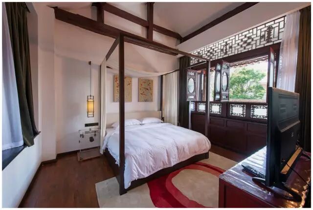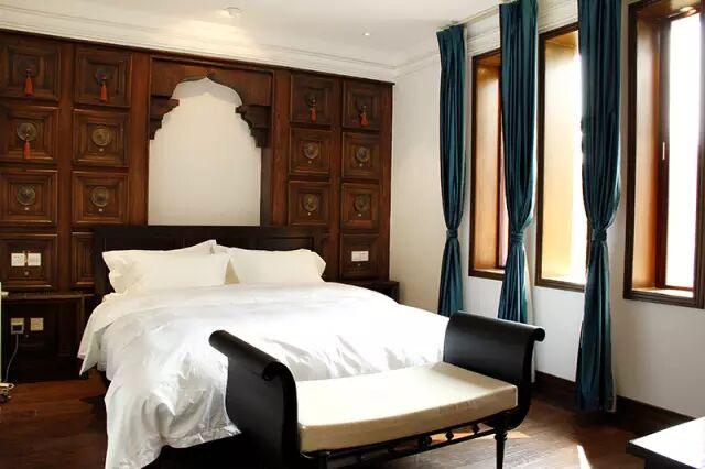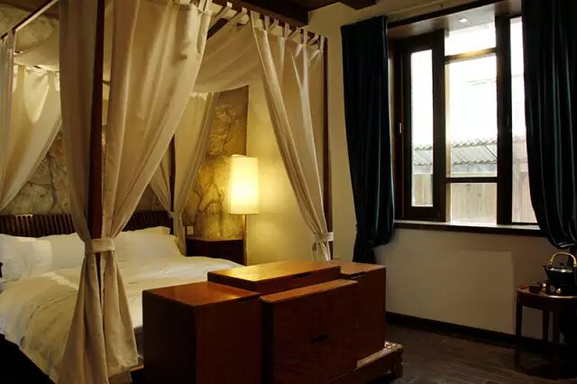 26間客房散布在六個獨立的院落,每一間都被最大程度地保留成了沒改建時的構架。它有中式和保留的一面:梁是以前的懸山頂,窗戶是可以漏光的木格子,客房裏的屏風也讓人想起了民國時期那份“不勝涼風的嬌羞”......