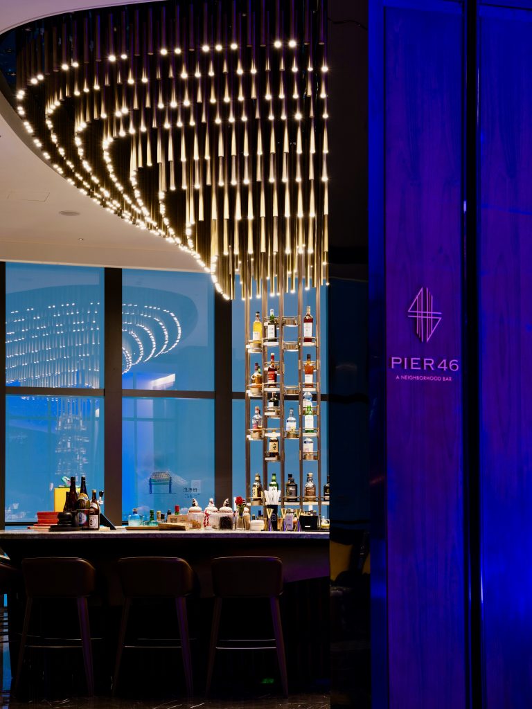 酒店餐廳PIER 46鄰裏餐廳及酒吧,主打意大利地中海風味美食及創意雞尾酒。以複古綠搭配孔雀藍,再點綴米黃、深棕等自然的大地色系,碰撞出濃烈的視覺沖擊。可以來這裏享用景觀超棒的下午茶和正餐。