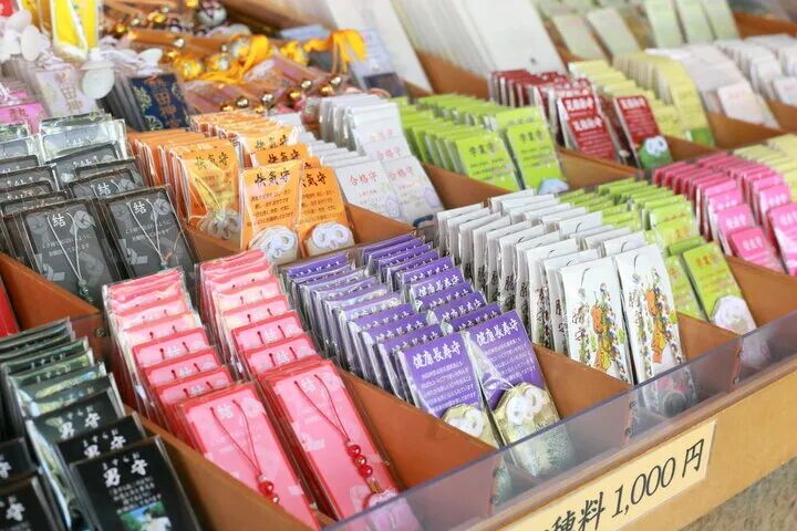 在主殿右側設有領受所,擺放著禦守、繪馬、正月的破魔箭等等。禦守的種類也是豐富多樣,有賦予智慧和勇氣的“勝守”和“男守”,還有促進姻緣的“結守”、帶來內心寧靜的“心守”、以及“健康長壽守”等。