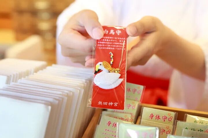 這裏特別受人喜愛的禦守之一是可愛的白鶴形狀的“白鶴守”。這個禦守與熱田神宮的其中一位祭神日本武尊有關,據說日本武尊逝世後,化身為白鶴回到了他的妻子宮簀媛命(みやすひめのみこと)身邊守護,這是一種可以讓夫婦或情侶緊密聯系,招來幸福的禦守。