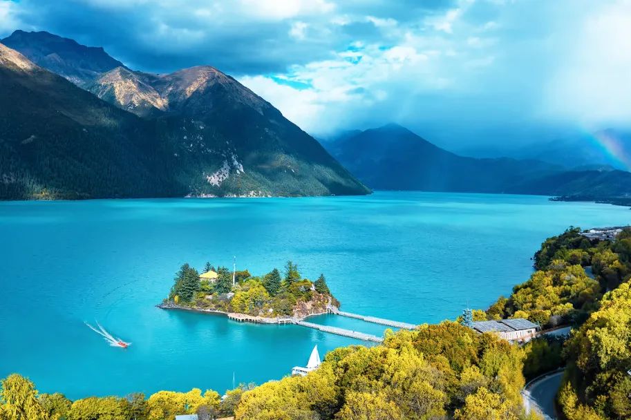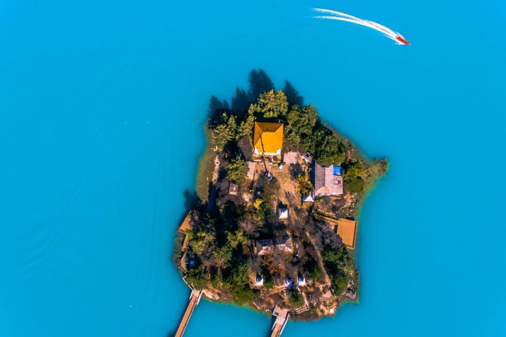湖心島位於巴松措的中心,是一個寧靜祥和的小島。島上綠樹成蔭,鳥語花香,還有一座古老的寺廟——錯宗寺,是西藏佛教寧瑪派的寺廟,具有悠久的曆史和深厚的文化底蘊。