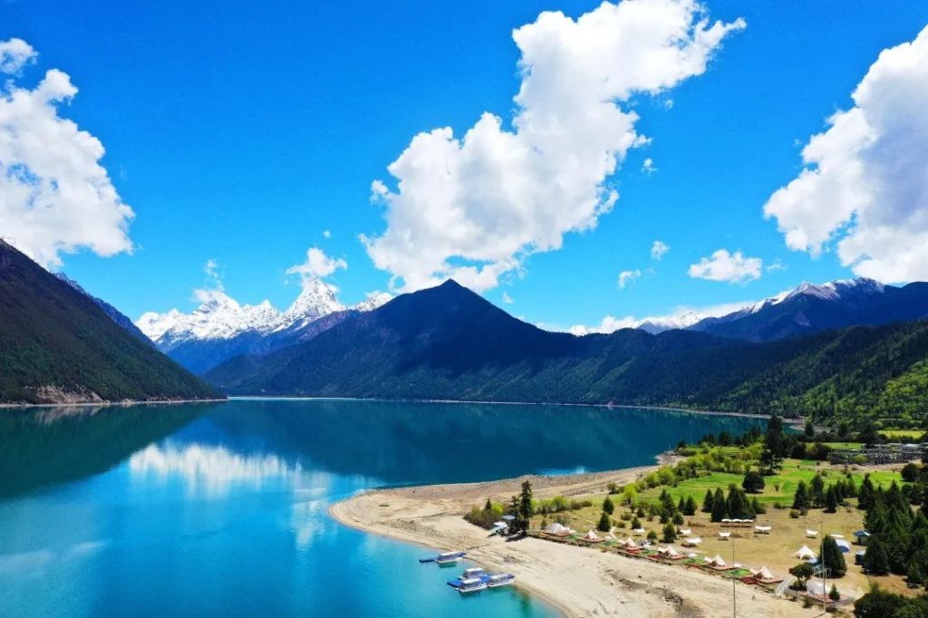 新措藏身與巴松措的懷抱中,是一片純粹而原始的自然之境。蔓延的綠意裏,雪山點綴、森林環繞、鳥鳴啾啾、小溪潺潺,這裏幾乎濃縮藏東南所有的絕美風景。