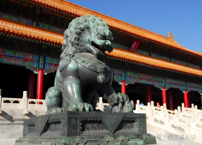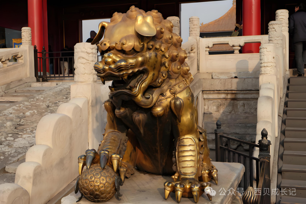 乾清門前的銅獅子是黃銅鎏金材質,如果說太和門的獅子是威武霸氣的,那眼前的這只獅子是十分的憨態可掬,可愛至極。