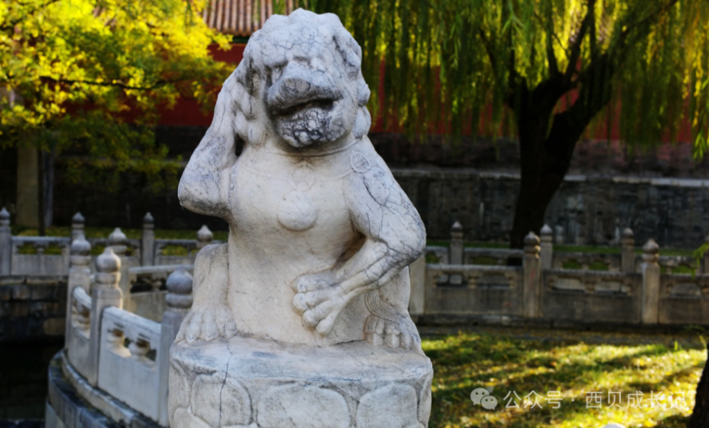 斷虹橋捂襠獅是故宮斷虹橋上的一座獨特石獅雕像,因其一手摸著頭,另一只手捂著褲襠的奇特造型而聞名。這座橋位於故宮太和門外,武英殿東面,橫跨內金水河,是故宮橋梁的經典之作。