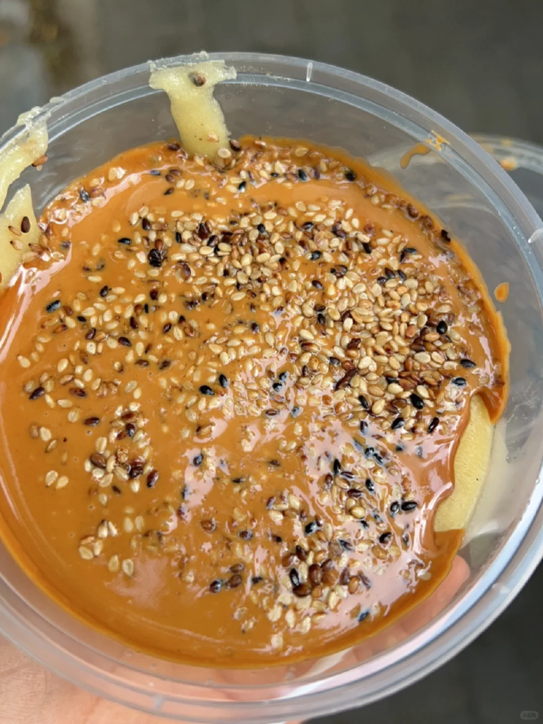 大興胡同面茶,真的很好吃!上面是厚厚一層鹹味二八醬,二分芝麻醬,八分花生醬。