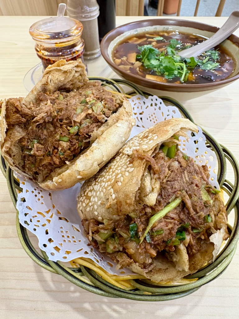 北京最好吃的燒餅夾肉,昌順馬記小吃店(團結湖店)。燒餅外脆裏韌,香酥的麻醬燒餅夾了滿滿的肉。