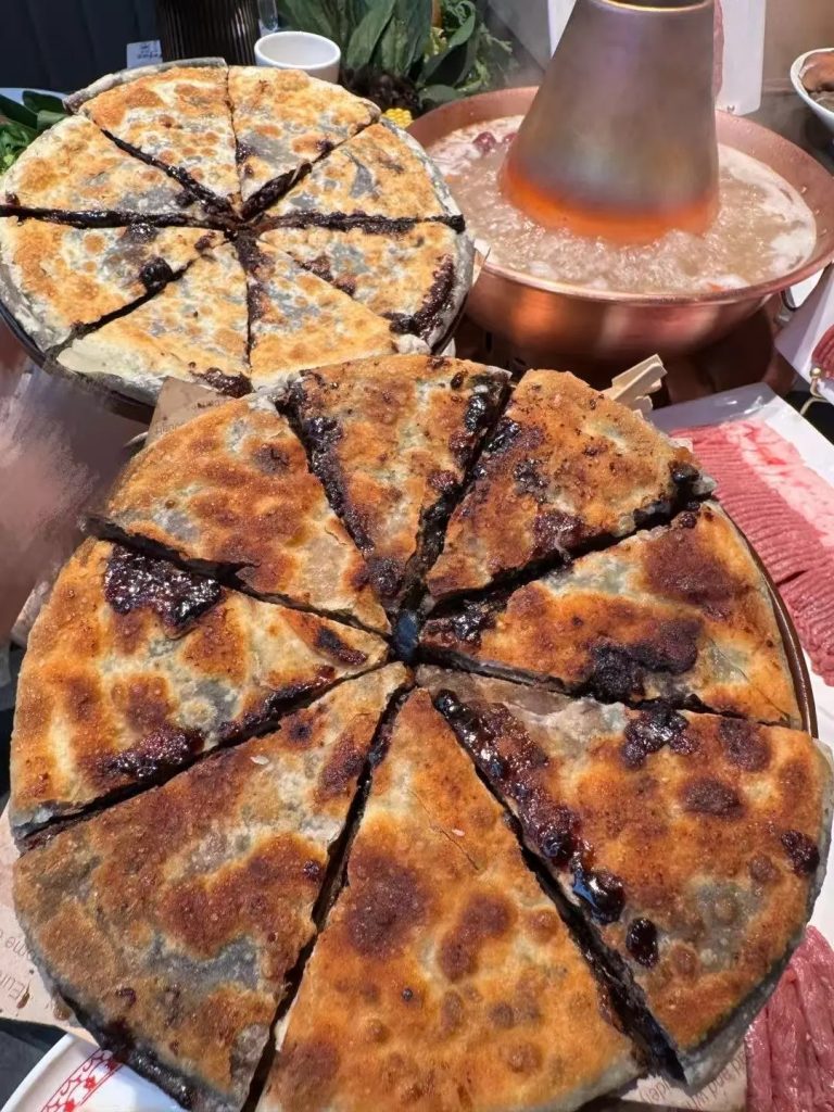 為了招牌麻醬糖餅來這家,清真·鴉兒李記·涮肉(牛街店)。麻醬糖餅,18元一份,紅糖給得太足了,剛出鍋趁熱吃,外皮焦酥脆,紅糖一口流漿的程度。