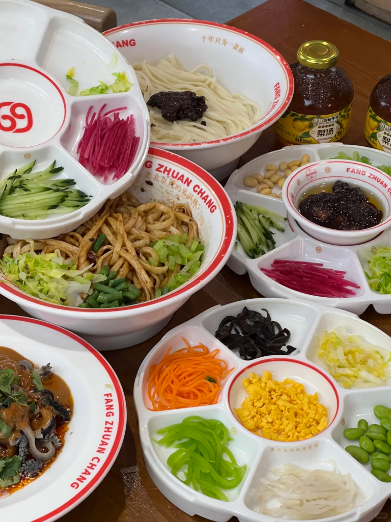 傳統地道的北京小吃~方磚廠69號炸醬面,連續7年米其林推薦,豐富的菜碼,濃香的炸醬,現點現煮的面條… 醬香濃鬱,免費續醬續面,局氣的很啊…
