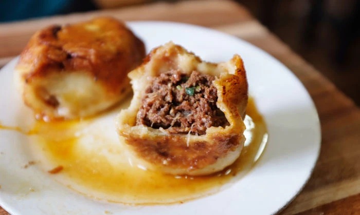 寶瑞門釘肉餅店的肉餅跟拳頭差不多大,7元一個,牛肉大蔥的肉餡特別香,超多鮮濃的湯汁,餅皮比較薄,底部是煎得酥酥脆脆的口感。