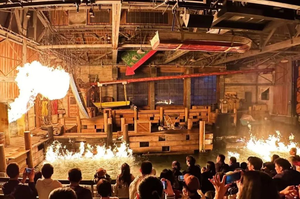 整場演出由故事主線串聯,充滿了特技效果,時而噴水,時而噴火,高空跳水等司空見慣,飛機沖出來一刹那將演出推向高潮,看完之後滿腦回味,直呼精彩。小小的攻略是演出期間會圈住不少遊客,所以周邊項目的排隊時間會有小幅下降。