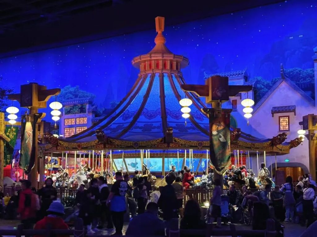 燈影傳奇是類似迪士尼小飛象那樣的高空旋轉項目,適合低幼兒童,對大孩子來說排隊太長就完全不值得了。項目沒有身高要求,1.22米以下兒童需由成人陪同。