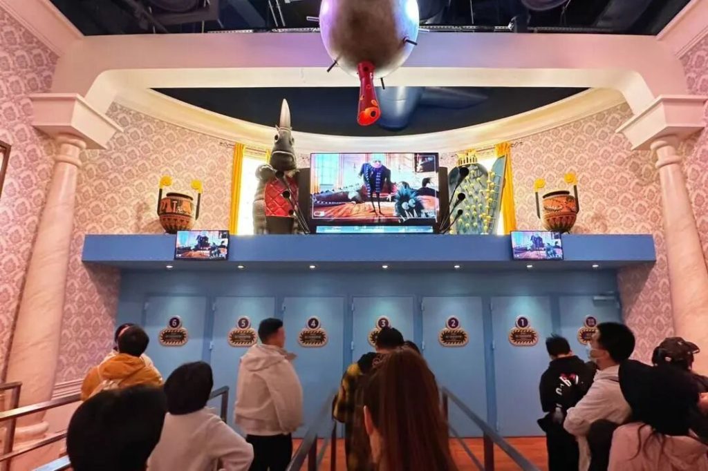 這片區域分布的三個項目是萌轉過山車、超萌漩漩渦以及神偷奶爸小黃人鬧翻天,主打一個熱鬧和萌翻,除此之外,還有一塊小黃人遊戲區。除了神偷奶爸小黃人鬧翻天項目單獨在外面,其餘項目和遊戲區都在一個大型室內場館內。