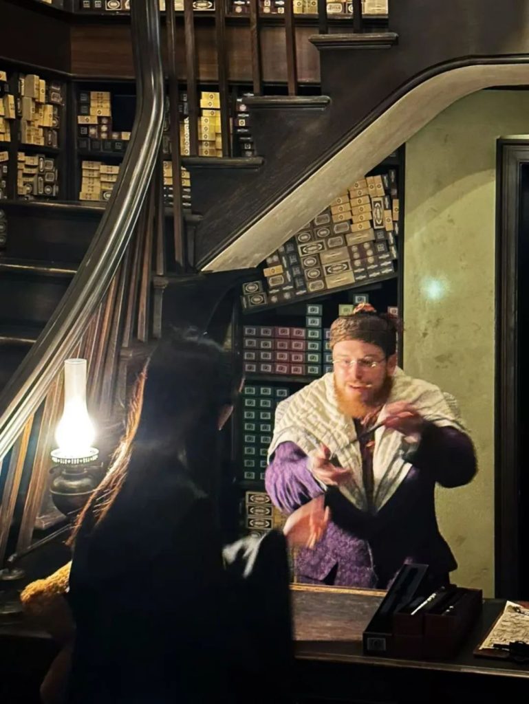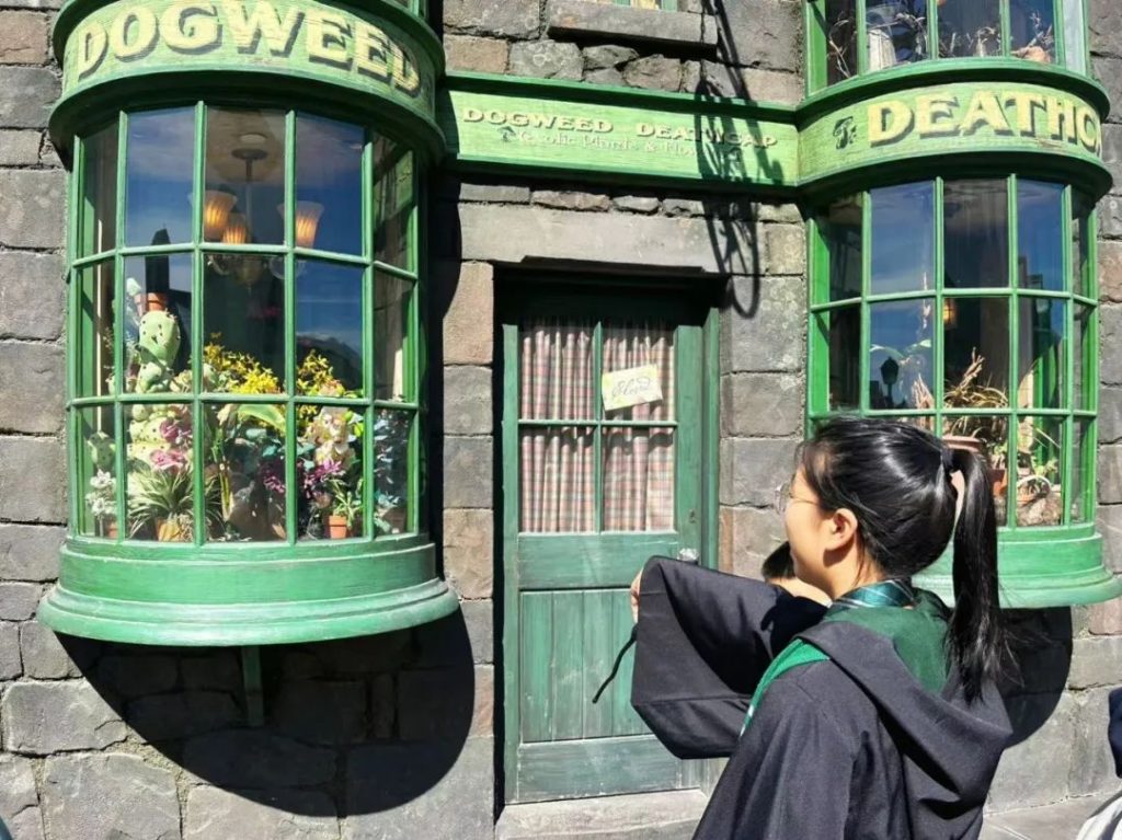 對角巷的每一個櫥窗前都站滿了哈利波特裝扮的遊客,在這裏租一套哈利波特裝束拍套寫真已經成為產業鏈,和迪士尼的旅拍如出一轍。對角巷的每扇窗戶裏都堆滿了細節,叫人流連忘返。哈迷哥哥說他可以在這裏呆上一整天。