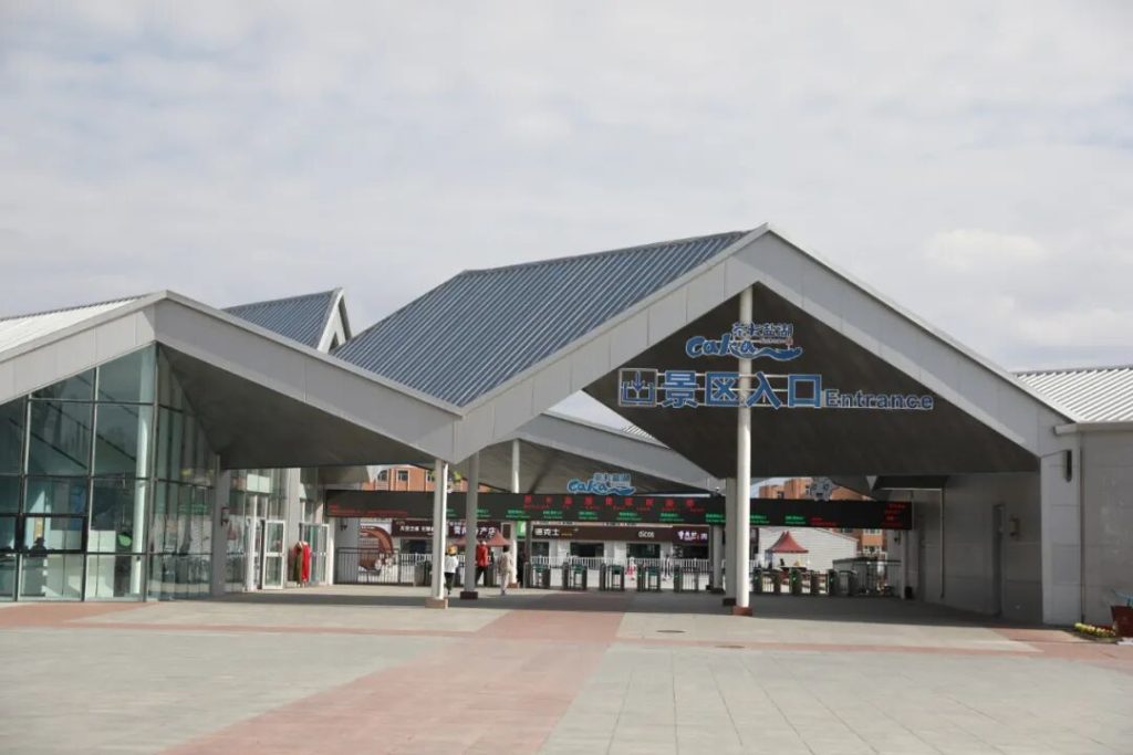 到達茶卡鹽湖景區,首先第一站是迎賓廣場,一到這裏映入眼簾的鹽湖觀光塔,可在觀光塔遠眺鹽湖,可在遊服中心購票及休息,可在青鹽賓館入住用餐。