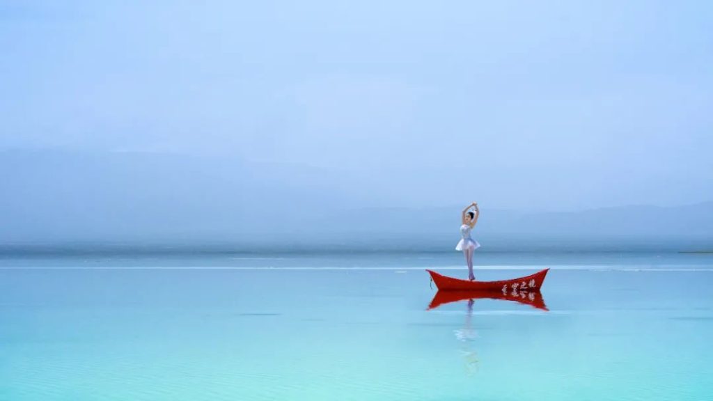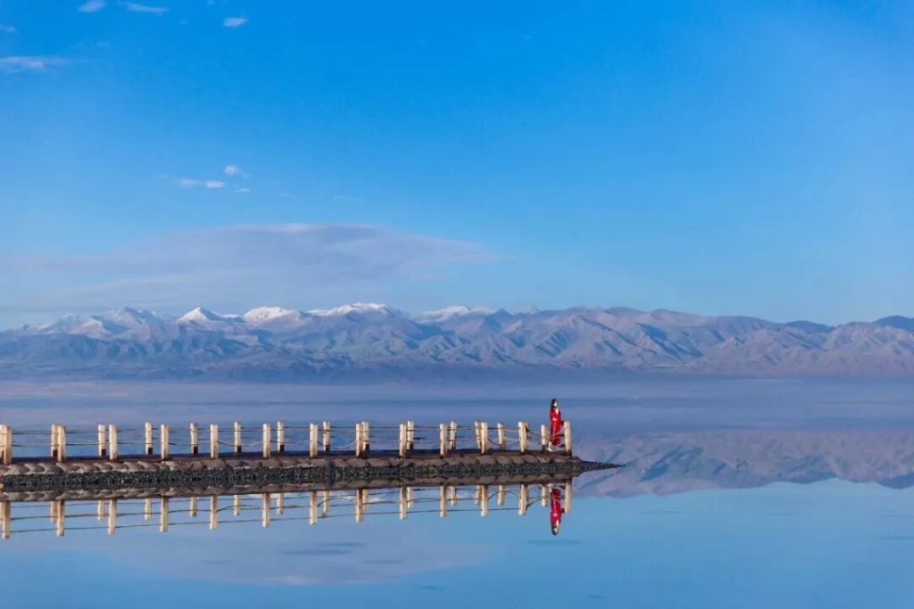 茶卡鹽湖最美的就是倒影,請記得一定要選身顏色單一且鮮豔的衣服,再帶上一條飄逸的絲巾,拍出來一定很美。