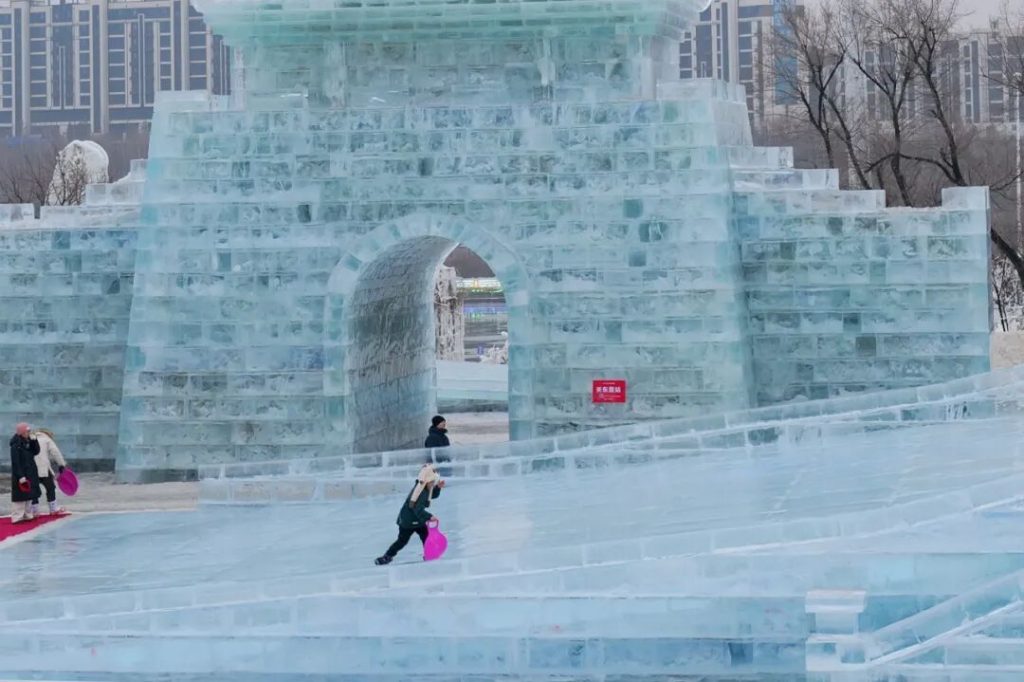 不得不說,長春的朋友都好有經驗,我看到的都是自帶滑墊來的。我在上一篇哈爾濱冰雪大世界攻略裏還提到了呢,當時都沒人帶,可能外地來的遊客居多。