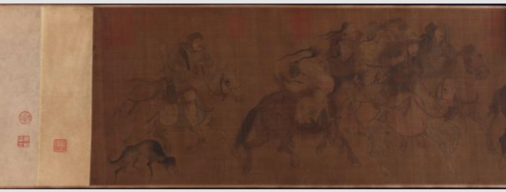 金代的“文姬姐”絹本設色,縱29厘米,橫129厘米。這幅畫描繪的是東漢末年蔡文姬從匈奴返回漢地途中的行旅情景,畫面上風沙漫天、人騎錯落有致,互相呼應,神情逼真,塞北風光盡現紙上。