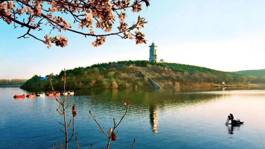 群山環抱著一潭形似彎月的碧水,這裏的風景美不勝收,央視熱播劇《人世間》多處取景於此。