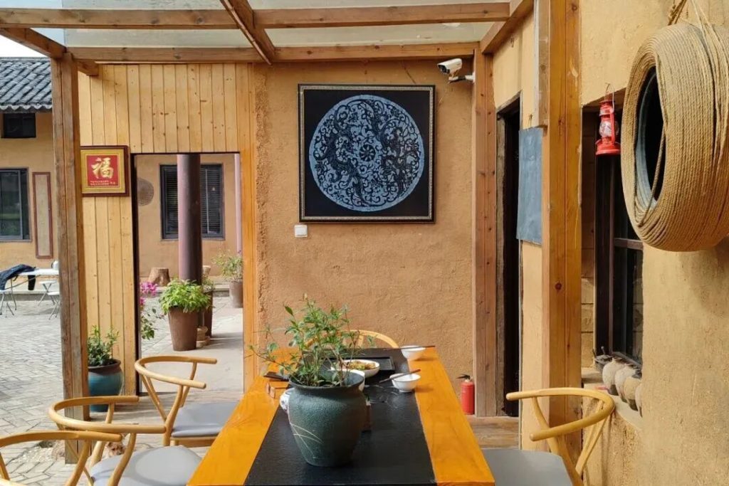背靠青山,面對桐木河,這家擁有院落、樹林,民宿保持著原鄉的肌理和風貌。土屋、水塘、廊橋,構成了一幅和諧的田園畫卷。