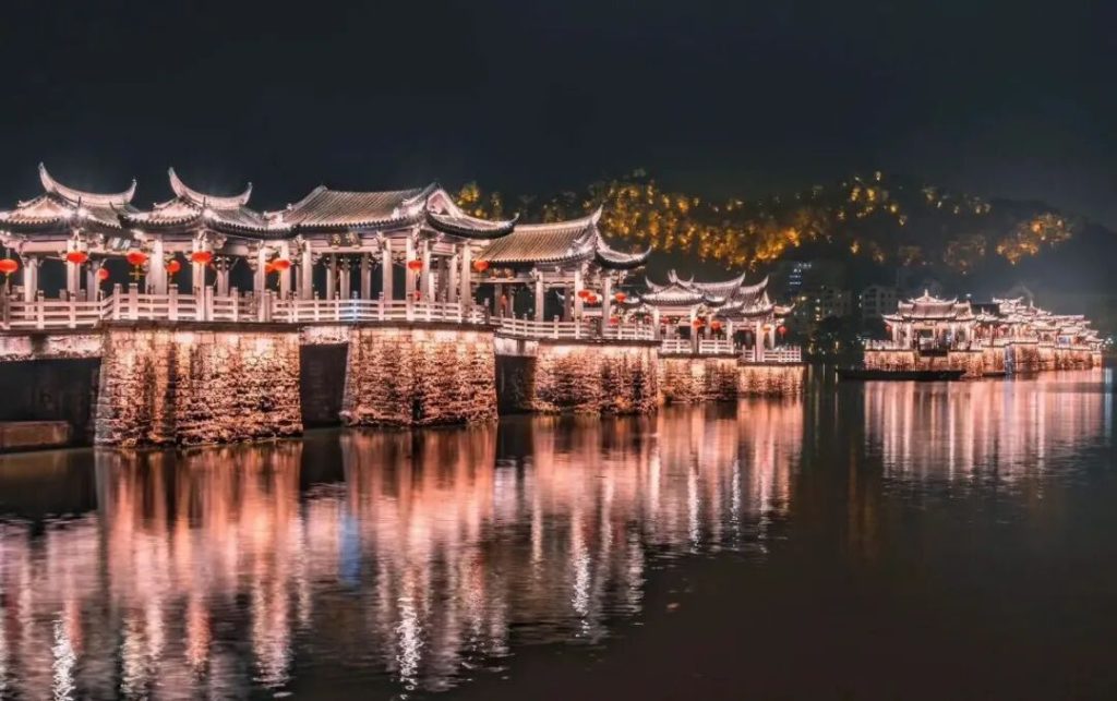 潮州廣濟橋,始建於南宋乾道七年(1171年),是中國古代橋梁的傑出代表之一。明嘉靖九年(1530年)形成“十八梭船廿四洲”的獨特格局,將梁橋、浮橋與拱橋結構巧妙融合,是我國橋梁史上的孤例。