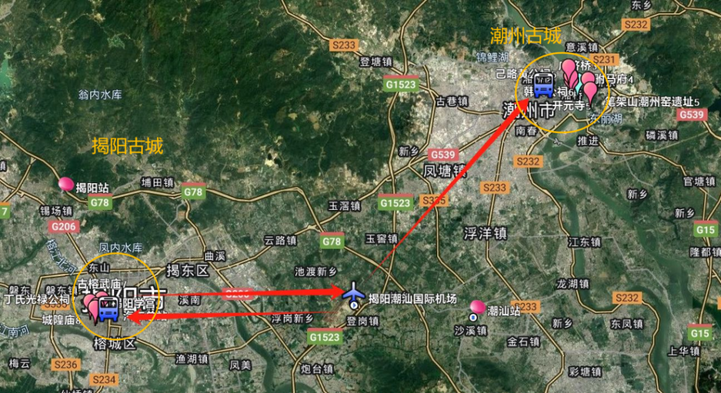 2.揭陽站-潮汕站 動車20分鍾 之後潮汕站-潮州古城 也可以打車or坐機場快線6號線於【金信酒店】下車 票價20元