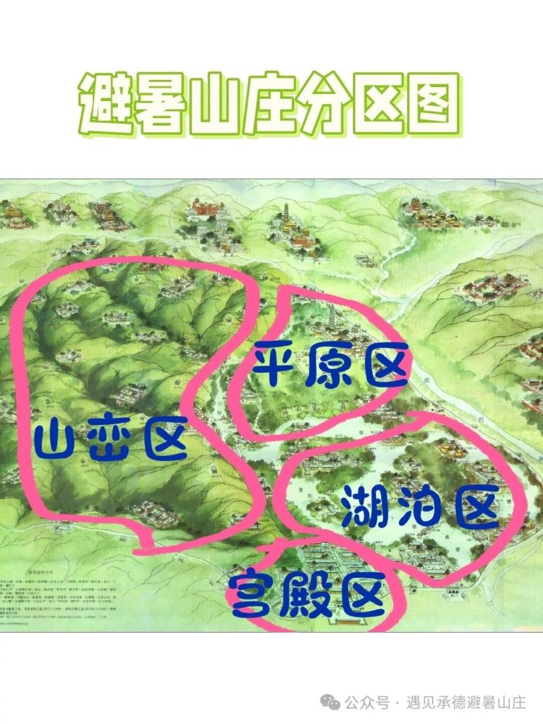 從南邊麗正門進入,往北依次遊覽,按順序經過這幾個區域:宮殿區-山巒區-湖泊區-平原區。