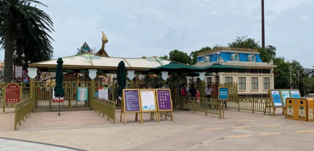 乘坐公共交通工具的朋友需要經過恐龍園外商業公園“迪諾水鎮”的主街,在標志性景觀項目“觀光塔”下方往左繼續走,到達恐龍園的安檢處。安檢過後是售票處(有自助售票和人工售票兩種方式,但現在絕大多數人都是在手機上提前購票了,只需要刷身份證就能入園)。