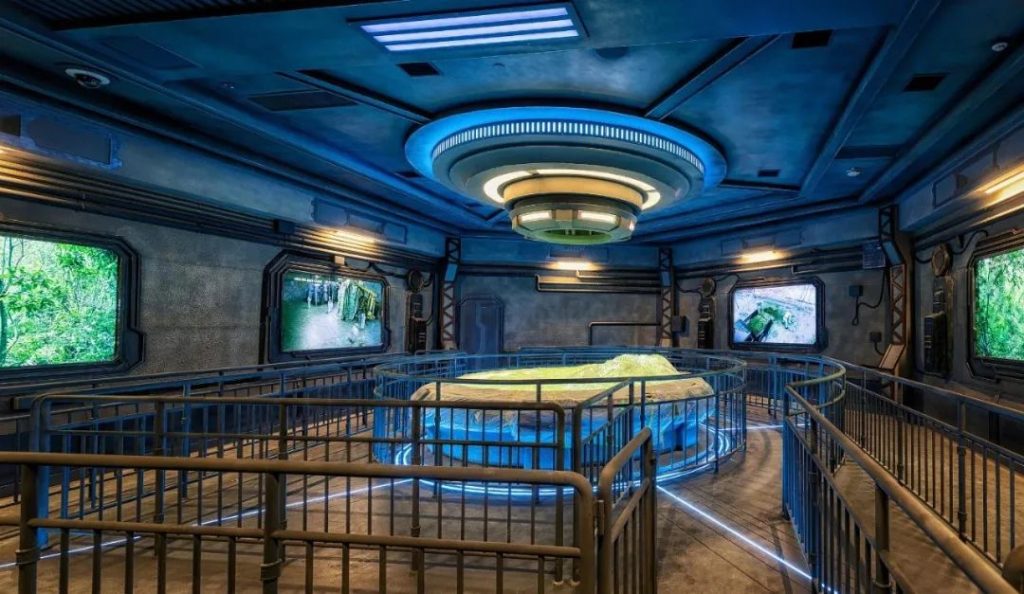 有的朋友不太理解,怎麼進入室內後還要繞來繞去,路過好幾個場景,再到達上車區域。其實這是現在流行的文旅體驗項目的做法,會在正式進入車輛的前端設置一些代入感強的場景,讓大家通過場景的認知來了解整個項目的背景故事,這些場景區域的另外一個功能就是等候排隊,改變以往排隊時單一的風景,提供更多的變化。所以一定不要心急,可以耐心體會。