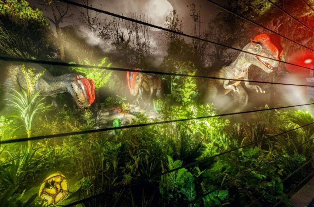 重啟白堊紀是一定要打卡的項目,在大象的旁邊。這個項目能帶你前往恐龍世界,近距離感受恐龍的存在。裏面有大小幾十只會動的恐龍,摸起來手感也不錯。