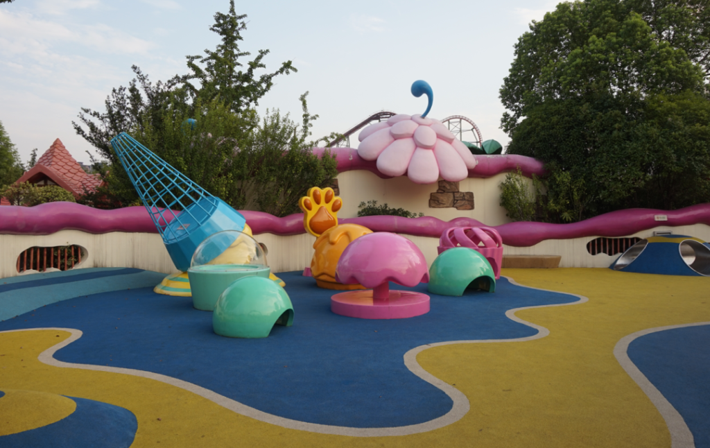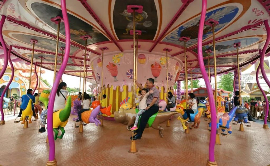 如果是帶孩子的親子家庭,最值得推薦的就是夢幻莊園區域,在中華恐龍園靠西北的方向,就是那個看上去五彩繽紛、糖果風格的區域。這個區域內大多數的項目滿90CM就可以乘坐,孩子們常常樂此不疲。