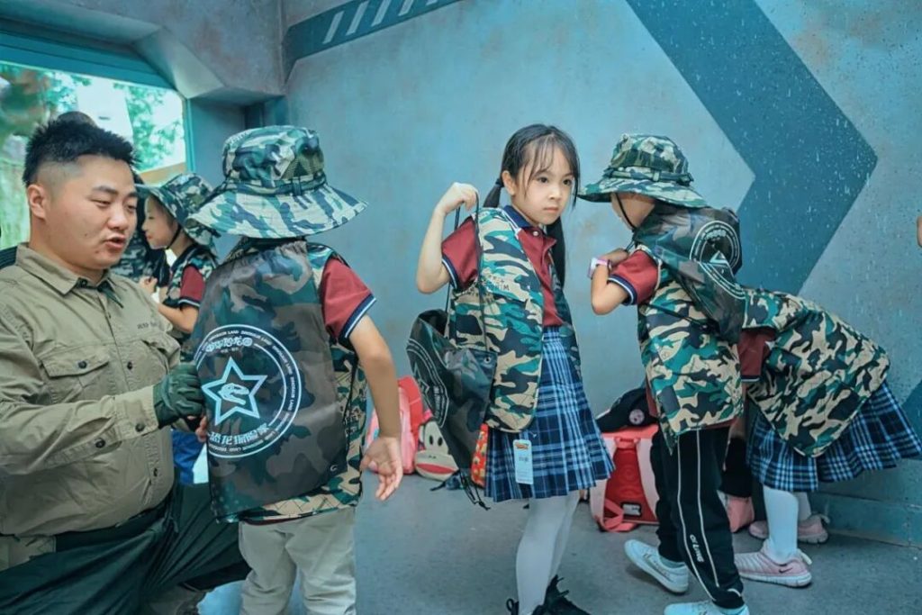 順便提一下另外一個戶外拓展探索類的項目是在夢幻莊園與基因研究中心交界處的雨林探險拓展基地,是時下比較流行的研學項目(需要購買課程),由老師帶著小朋友進行野外生存技能挑戰,同時學習一些恐龍科普知識。