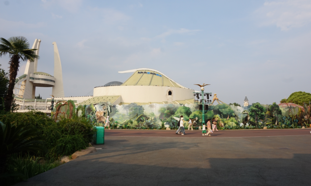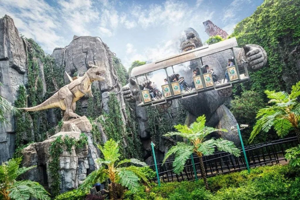 在這個區域的最裏面是一個兒童可參與的項目,金剛,身高90CM便可參與。場景取自金剛大戰恐龍。對於兒童來說,還是非常好玩的。乘客進入巡邏車,金剛同時舉起車廂,搖晃。當車子到達金剛眼前時,開始使用特效:聲音、霧、放光的眼睛和座位振動。