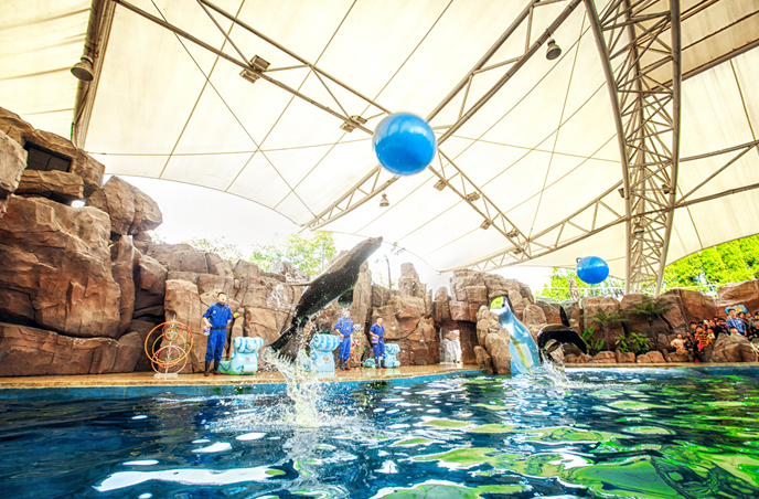 海獅表演,其實它的位置在冒險港中間廣場的左前方,穿過中心廣場左轉往前便能到達入口處。很適合親子觀看,海獅很可愛地在馴獸師的指揮下展示才華。每天分場次,需要提前關注時間。