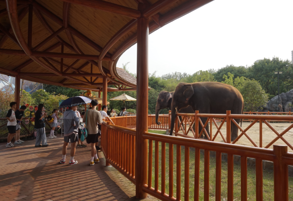 在霹靂摩托的背後,繞過霹靂摩托往西去,是吉象穀。由於比較靠近角落,經常會被忽視,在整個中華恐龍園的西南角,瘋狂恐龍人區的邊緣處。這邊有大象展示,可以觀看大象以及喂食,也是適合遛娃之地。