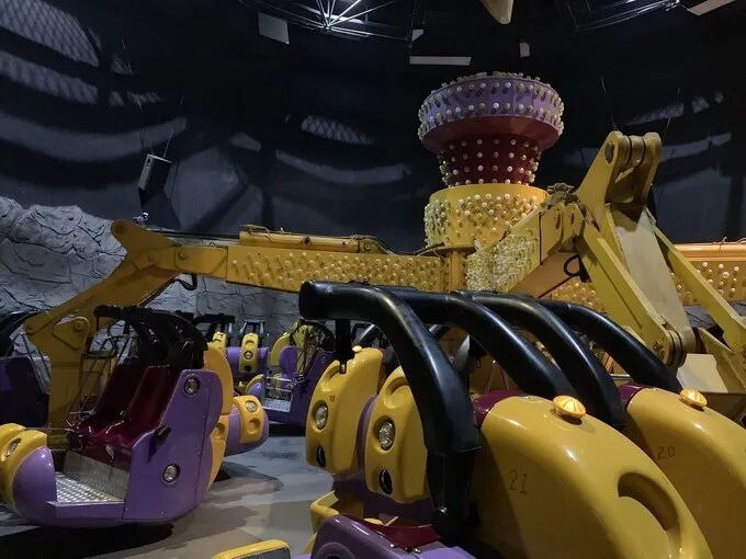 另外一個還比較緩和的項目是翼飛沖天,也比較有特色,人要趴在座位上,隨著設備的轉動,被抬高,左右搖擺,一會俯沖向下,一會又被垂直拉升,仿佛自己就是一只翼龍一樣在空中翱翔。1.2M以上即可乘坐。