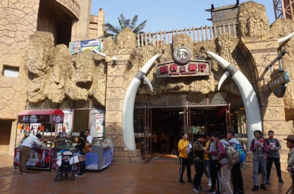 其實中華恐龍園內有許多很好吃的東西,不用擔心沒得吃而拼命帶過來。庫克蘇克區內有四個餐廳,最大的餐廳在通天塔的下方,叫峽穀餐廳,中餐,有菜、有飯,環境也很舒適。