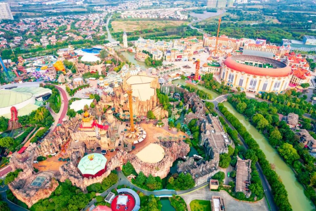 中華恐龍園,2000年9月正式開業,是一座集科普、遊樂、演藝、住宿、購物於一體的一站式旅遊度假區,有“東方侏羅紀”的美稱。常年位列亞太地區主題公園排行榜的前15位。