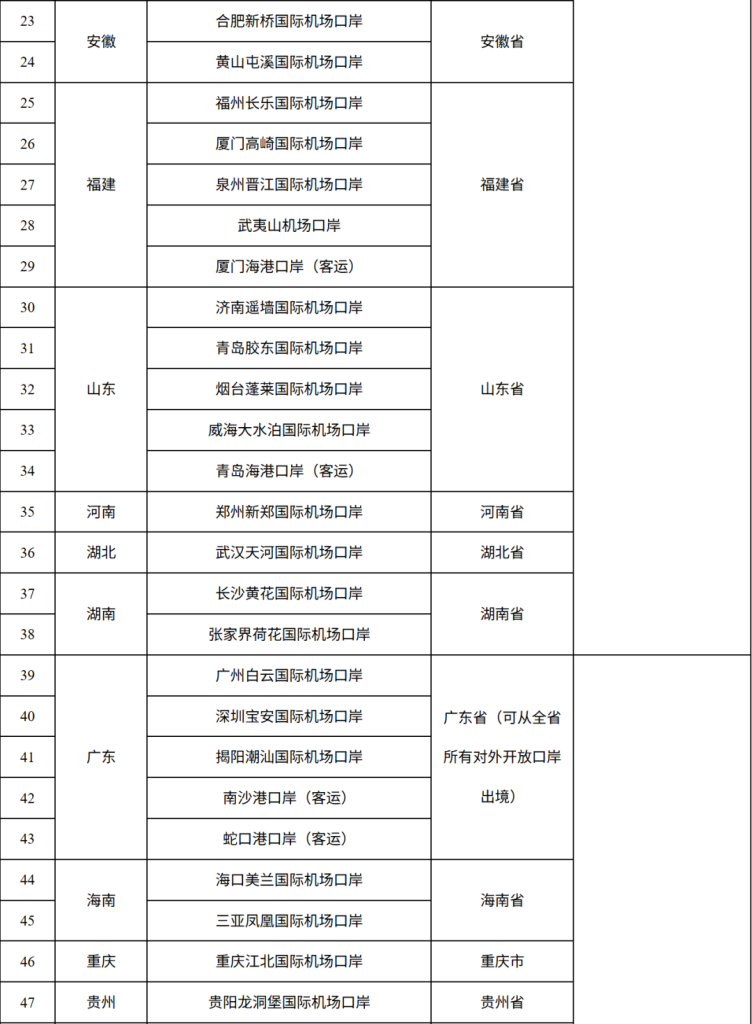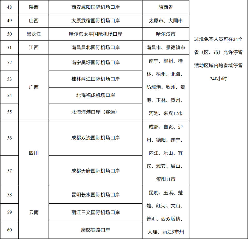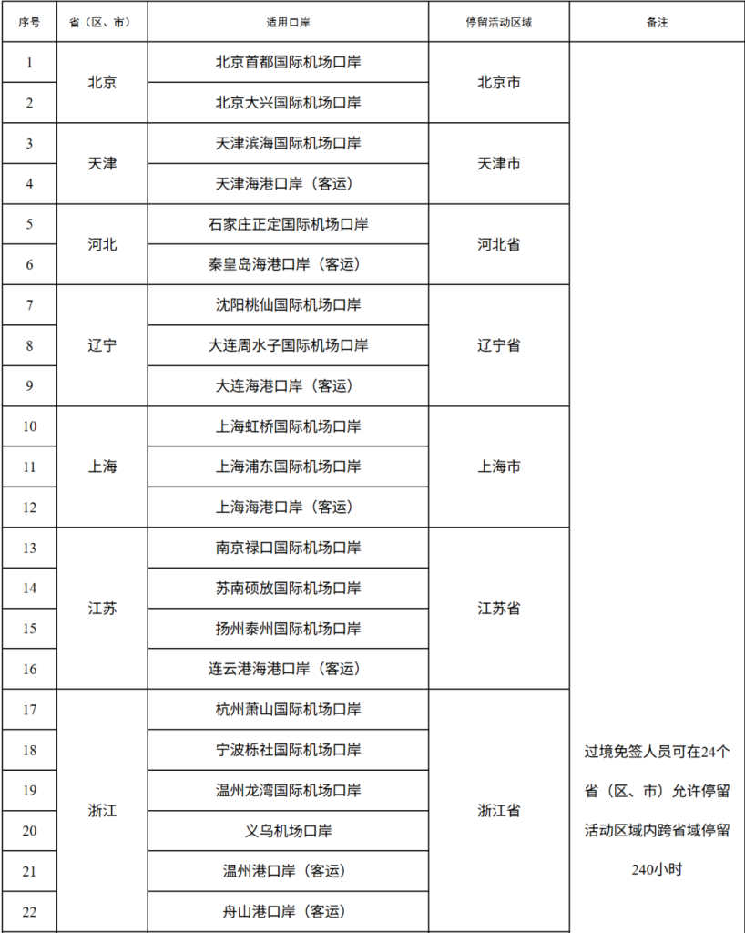 240小時過境免簽政策入境口岸