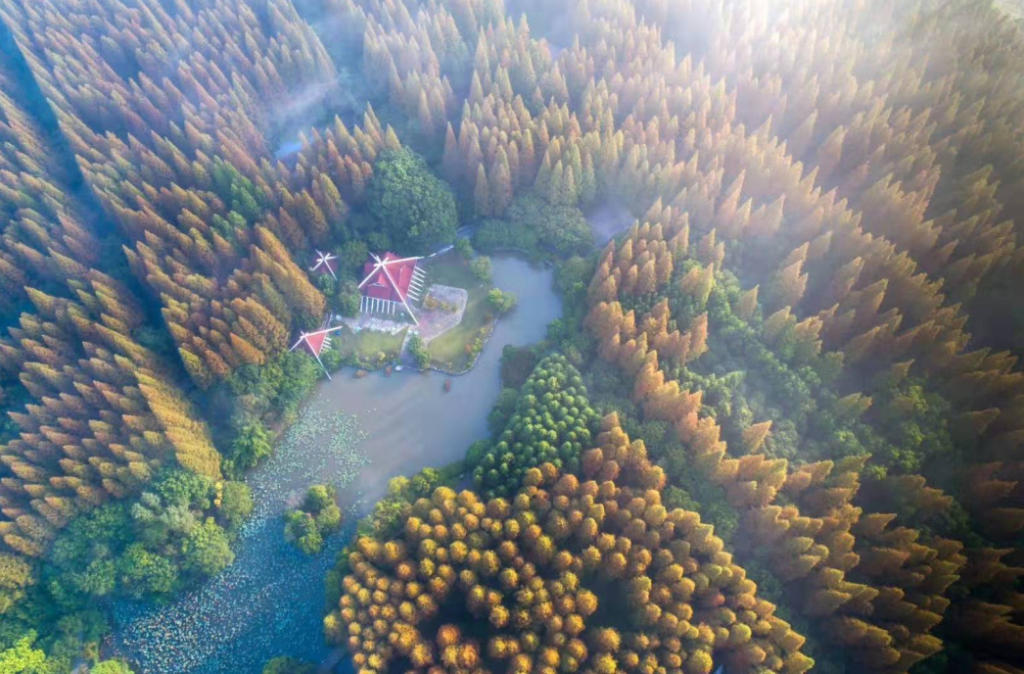 特別是到了深秋,園內的成片的金黃色水杉林非常驚豔,像油畫一般,強烈推薦~~