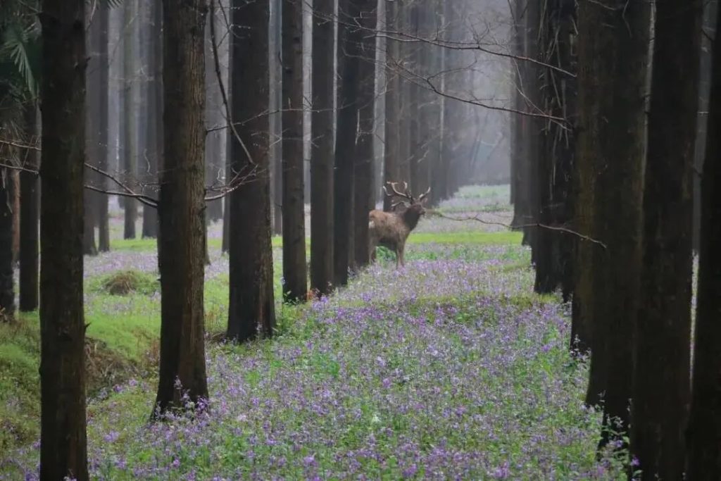 大門進去後直走100米左右,右轉再走200米左右,就能看到火遍全網的打卡聖地--“沉寂在杉樹林裏的廢棄飛機”,這是一架殲六型飛機,由中國人民解放軍海軍提供,它靜靜的躺在森林之中,早已與這天地山色融為一體。