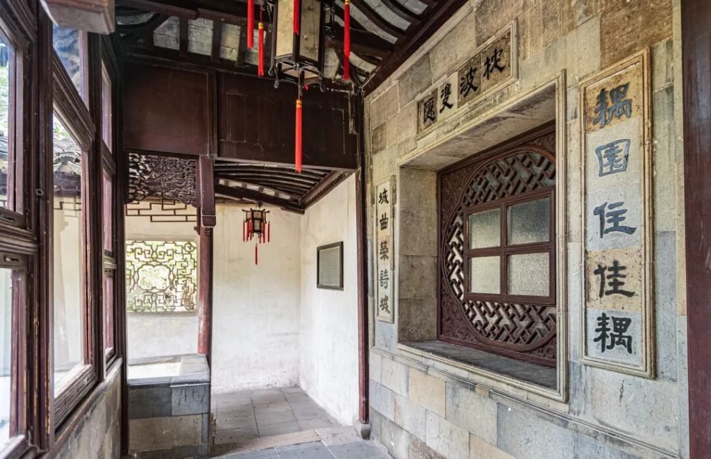 花窗兩側是女主人,湖州才女嚴永華親書的楹聯“耦園住佳偶,城曲築詩城”,橫批“枕波雙隱”,表達了夫妻雙隱,才情雙絕之意。