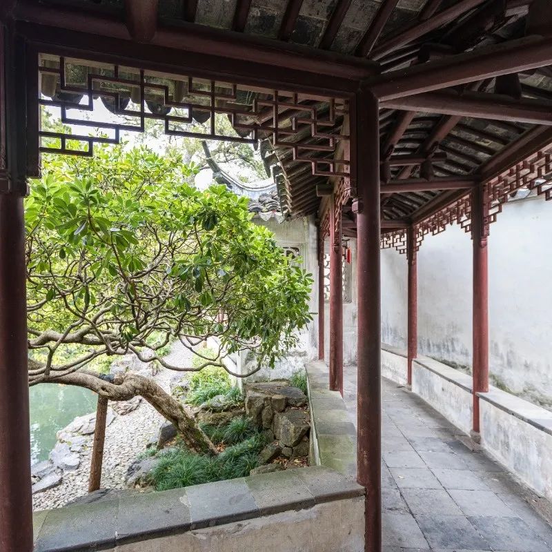 東花園遊廓曲折環合,周邊遍種桂花和竹子,所以又稱樨廊和筠廊。順著遊廊,將整個東花園之間的景點串連起來,還能從不同方位、不同季節去欣賞中央的山水主景。