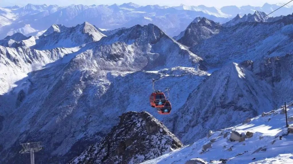 高山天空,白雪林海,還能近距離看到那抹東措日月海美色。坐在悠慢平穩的纜車裏安全感滿滿,自顧自地欣賞美景,體驗一絕!