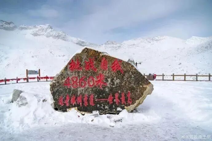 登上4860雪山之巔,必須得給自己點個贊,在石碑處為自己的勇氣打卡一張!下索道後就可以到4860雪山之巔打卡點來拍照哦!