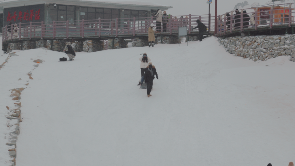 觀景平台旁邊就有一個雪地遊樂場,坐上滑雪輪胎,稍微一推,一下子就能向下滑去,刺激又好玩,瞬間擁有孩子般的童趣快樂。