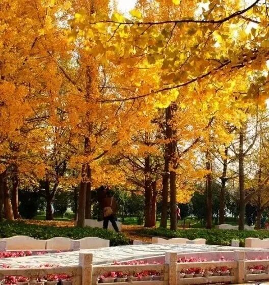 大觀樓的秋天也是非常有特色的,因為這裏有一片銀杏林。銀杏林位於大觀西區,靠近遊樂場與滇池附近,2000多平米600多棵銀杏樹分別排列在道路兩邊,一眼望去,無邊無際的金黃映入眼簾,美不勝收。