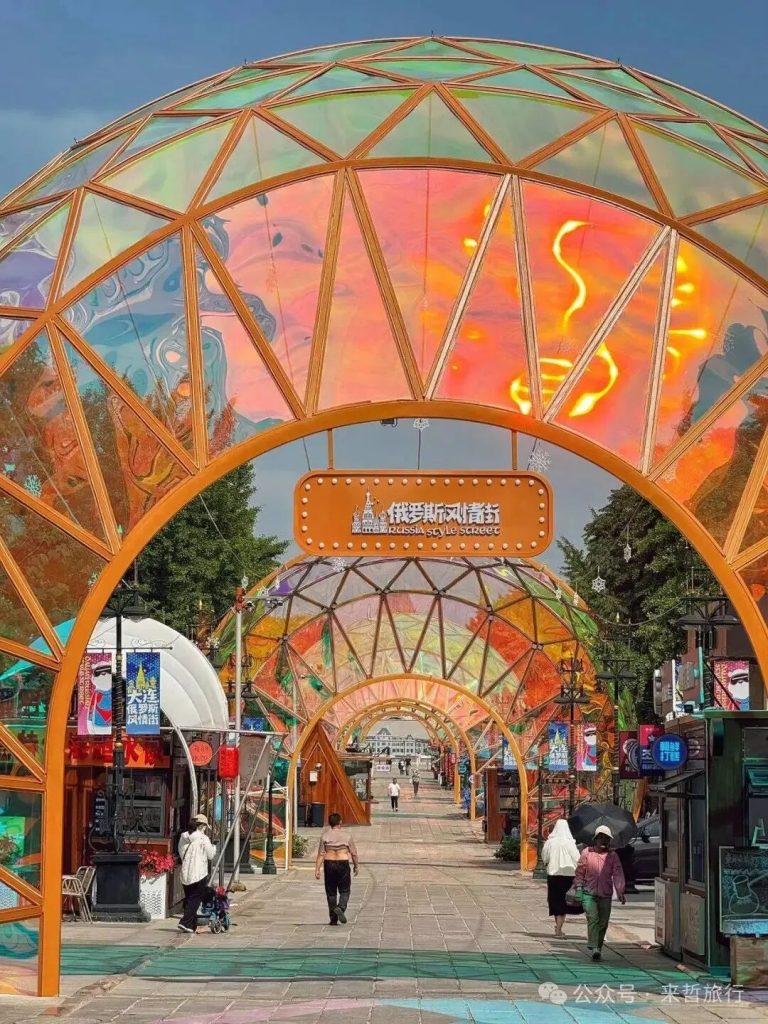 一踏入風情街,迎面而來的是濃鬱的俄羅斯風情。街道兩旁的建築,紅牆金頂,典型的俄羅斯風格,讓人仿佛置身於異國他鄉。漫步在街道上,耳邊不時傳來悠揚的手風琴聲和歡快的俄羅斯歌曲,讓人陶醉其中。
