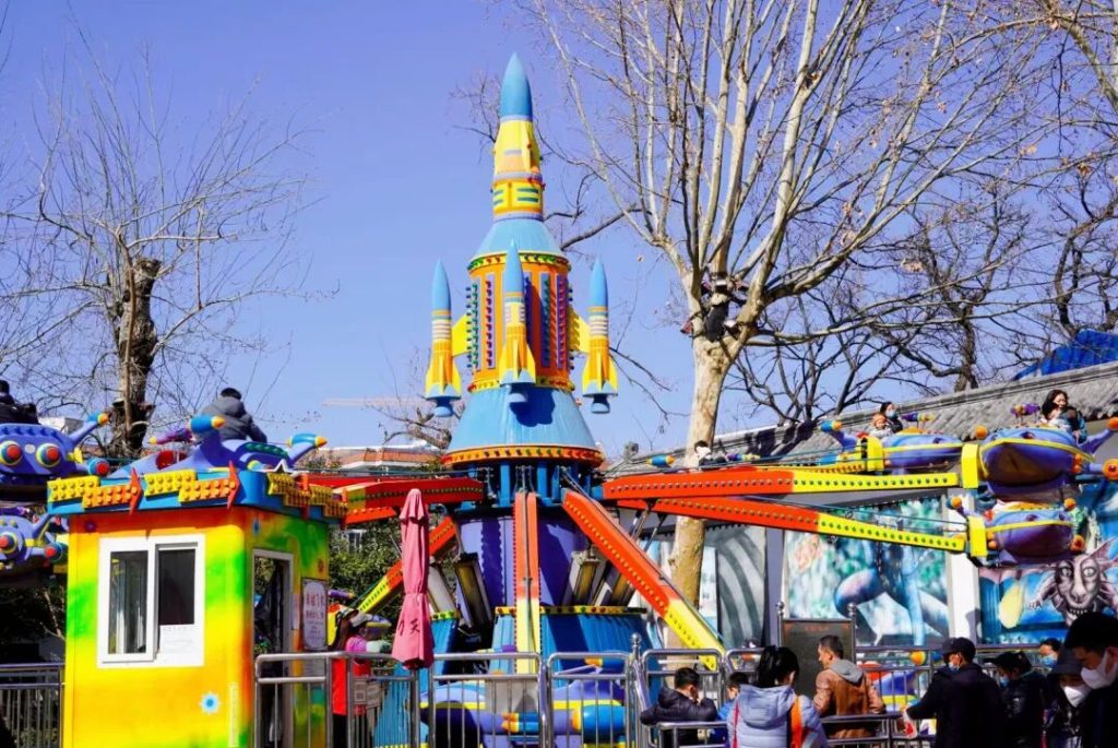 從西南門進來往北走,基本就是走走停停看風景,什么廊榭曲橋龍泉池煙波橋之類的。紫葉李開的時候,一路也是春色無限的。繼續往北,最近的一個打卡點就是遊樂場。