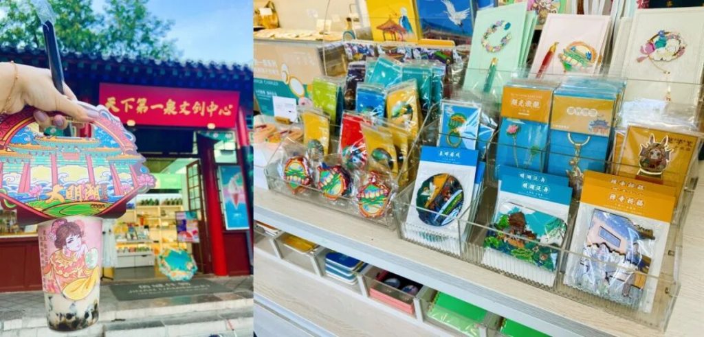之前挺火的文創中心也在鐵公祠庭院裏,可以買到濟南八景的文創奶茶,推薦翠屏春曉。還能買到天下第一泉聯名的可口可樂。